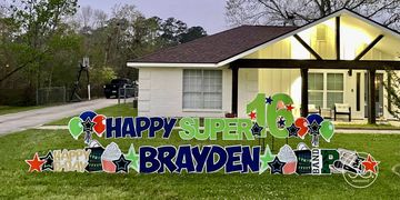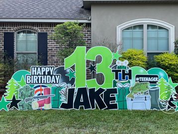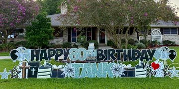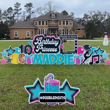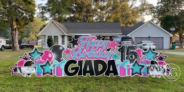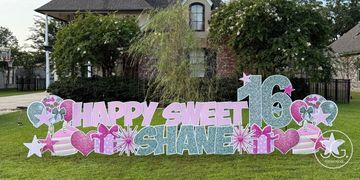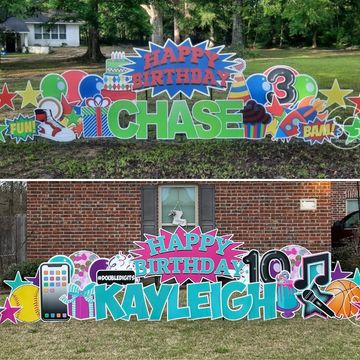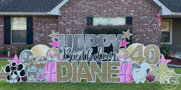 These styles of mega greetings are what make Sign Gypsies the leaders in the yard greeting industry. They are big, unique and fun! Use the CELEBRATION BOOKING FORM button to request a mega sign or photo frame greeting. Opening price $85.